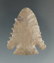 Excellent flaking and style on this 2 1/2" serrated Cornernotch found in Kentucky. |