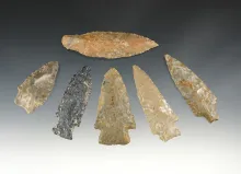 Set of 3 well patinated points found by J.R. Dalton in Pulaski Co., Kentucky. The largest is 2 3/4".