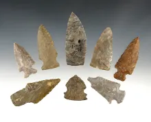 Set of 8 assorted points found by J.R. Dalton in Pulaski Co., Kentucky. The largest is 2 1/2". | KENTUCKY | 80.00 | |