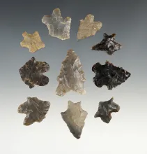 Set of 12 very well made Triangle points found by Joel Hennesee in Braken & Mason Co., Kentucky. | KENTUCKY | 300.00 | |