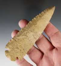 Excellent flaking and edge work on this 3 3/4" Paleo Fluted Clovis found in Kentucky. |