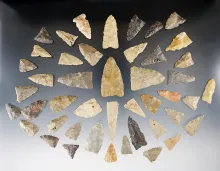 Group of 45 triangle points found in Kentucky, largest is 1 1/2". |