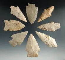 Group of eight assorted Missouri arrowheads in nice condition, largest is 3". | MISSOURI | 60.00 | |