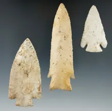Set of three restored Hardin points found in Illinois/Missouri, largest is 4 1/8". |