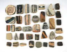 Group of 34 anciently salvaged prehistoric pottery shards sanded into various different shapes. New | NEW MEXICO | 105.00 | |