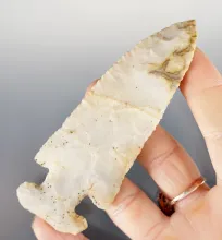 Classic style 4" Flint Ridge Flint Archaic E-Notch Thebes. Found in Ohio. Ex. Morast, Tommy Beutell.