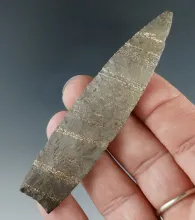 Nice mineral deposits on this 4 5/16" Flint blade found in St. Clair Co., Illinois. |
