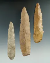 Set of three Flint Blades found in Illinois, largest is 5 5/8". ILLINOIS 70.00