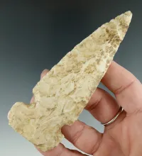 4 1/4" Sidenotch Knife made from Burlington Chert. Found in St. Clair Co., Illinois. Perino COA. ILLINOIS 220.00