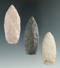 Set of three Paleo Lanceolates found in Illinois, largest is 2 9/16". | ILLINOIS | 110.00 | |