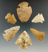 Set of six points and knives found by Don Simmons in Illinois. Largest is 2 5/16". | ILLINOIS | ||