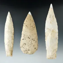 Set of three flaked Artifacts from Illinois and Iowa with restoration to the tip areas. |