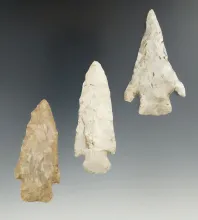 Set of three Arrowheads from the Illinois area, largest is 2 3/4". |