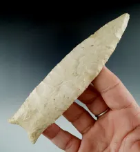 Nicely beveled 3 3/4" Hardin found near Springfield Illinois made from Burlington Chert. COA. |