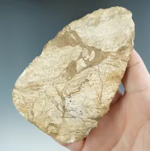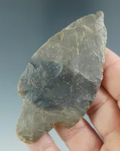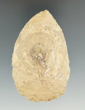 Excellent flaking and style on this 2 13/16" steeply beveled Archaic Thebes found in Indiana. | INDIANA | 90.00 | |
