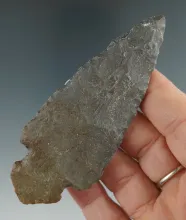 Nicely flaked and well styled 2 5/16" dart point made from Indiana Green Flint. Found in Indiana. | INDIANA | 45.00 | |