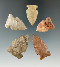 Set of five Sidenotch points found in Indiana, largest is 1 9/16". | INDIANA | 50.00 | |