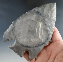 Huge! 5" Hornstone Hopewell with a large bull's-eye in material. Restoration to 1 1/4" of tip. INDIANA 250.00