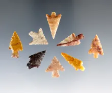 Set of 8 Assorted Columbia River Arrowheads, largest is 13/16". OREGON 60.00