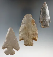 Set of three Flint knives found in Kentucky and Illinois, largest is 3 1/8". Ex. Don Simmons. |