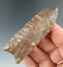 3 9/16" Buck Creek with excellent secondary flaking to blade edges found in Kentucky. Bennett COA. |