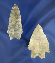 Nice pair of Ohio arrowheads including a 2 1/4" heavily patinated pentagonal point |