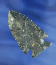 4 7/16" Double Notched Ovate - banded slate - Crawford Co., near Oceola. (Surface has been cleaned) |