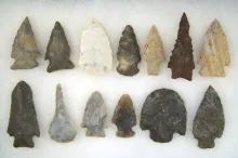 Set of 13 assorted Ohio Arrowheads and Knives, largest is 2 3/4". | OHIO | 65.00 | |