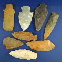 Set of eight assorted Midwestern Knives, largest is 2 3/4". Includes a beautiful Ohio Hopewell. |