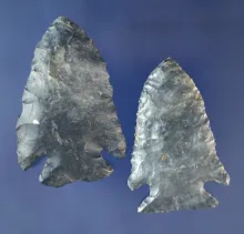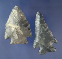 Pair of Coshocton Flint Arrowheads found in Ohio including a 2 1/8" Notched Base Dovetail. |