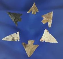 Set of six nice arrowheads found near the Columbia River, largest is 3/4". |