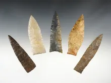 Set of 5 Restored Copena points found in Kentucky and Tennessee. The largest is 3 5/8". |