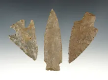 Set of 3 nicely made Tennessee points in great condition. The largest is 3 1/4". |