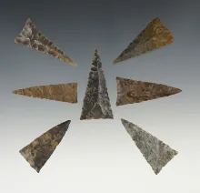 Set of seven very well-made Mississippian Triangle Points found in Tennessee. Largest is 1 9/16". |