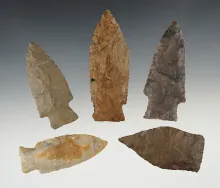 Excellent group of five assorted points found in Tennessee. Largest is 3 18". |