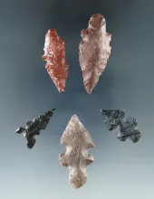Set of five arrowheads found in Texas, for are Duran points, largest is 1 7/16". TEXAS 55.00
