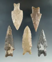 Set of five Texas arrowheads, largest is 2 7/8". |