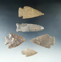 Nice set of five large arrowheads found in Texas, largest is 3". |