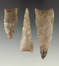 Set of three Texas Arrowheads made from Edwards Plateau Chert, largest is 2 5/8". |