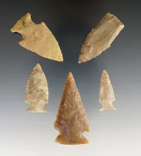Set of 5 assorted points found in the Texas area. Largest is 2 1/8". TEXAS 60.00