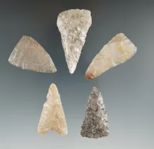 Five Atlatl Valley Triangle Knives. Longest is 2". Found near the Columbia River, OR. |