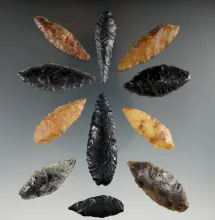 Eleven Cascade Leaf Blades, longest is 2 1/4". Found near the Columbia River, OR. |