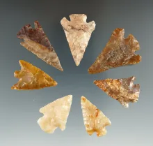Seven Quilomene Bar Points, longest is 1 5/8". Found near the Columbia River, OR. |