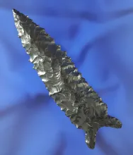 Rare style! 3 1/4" Paleo Lind Coolee made from nicely striped Agatized Wood Rogers and Michel COA's.