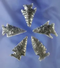 Set of five assorted obsidian arrowheads found near Fort Rock Oregon, largest is 1 5/16". OREGON 60.00