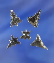 Quality set of uniquely styled heavily serrated obsidian arrowheads, largest is 5/8". |