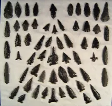 Set of 15 Obsidian arrowheads found in Oregon, largest is 1 1/4". |
