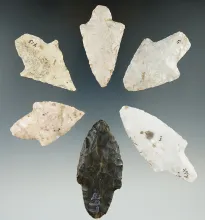 Group of seven assorted Missouri arrowheads, largest is 2 5/16". | MISSOURI | 30.00 | |