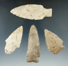 Set of four Flint knives found in Missouri, largest is 3 3/16". | MISSOURI | 40.00 |
