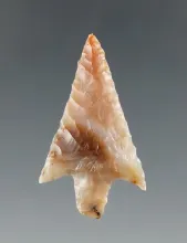 1 1/2" stemmed point made from semi-translucent pink chalcedony found in Klickitat Co., WA. |